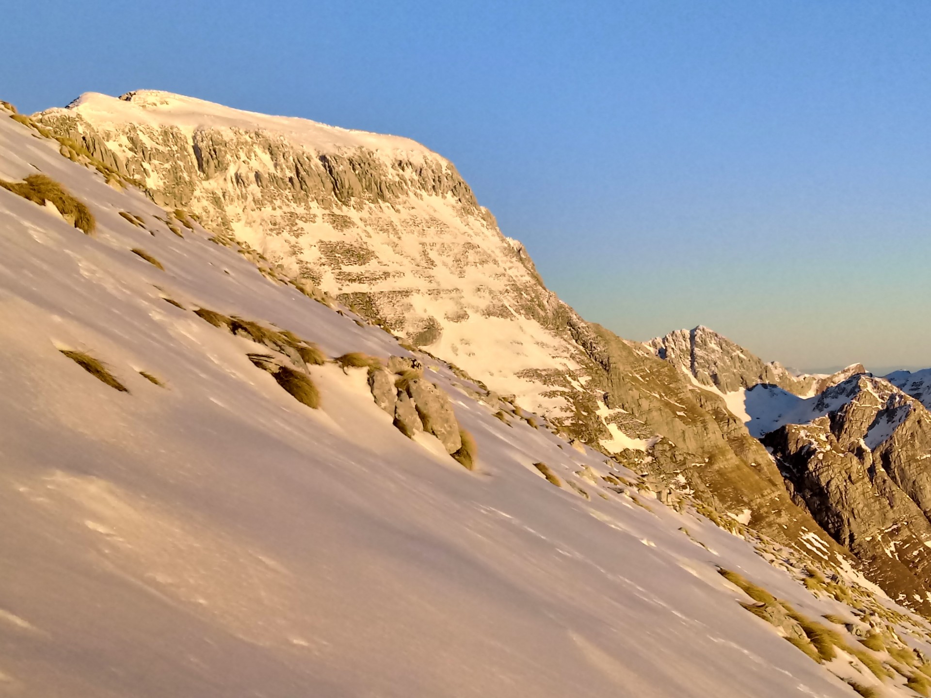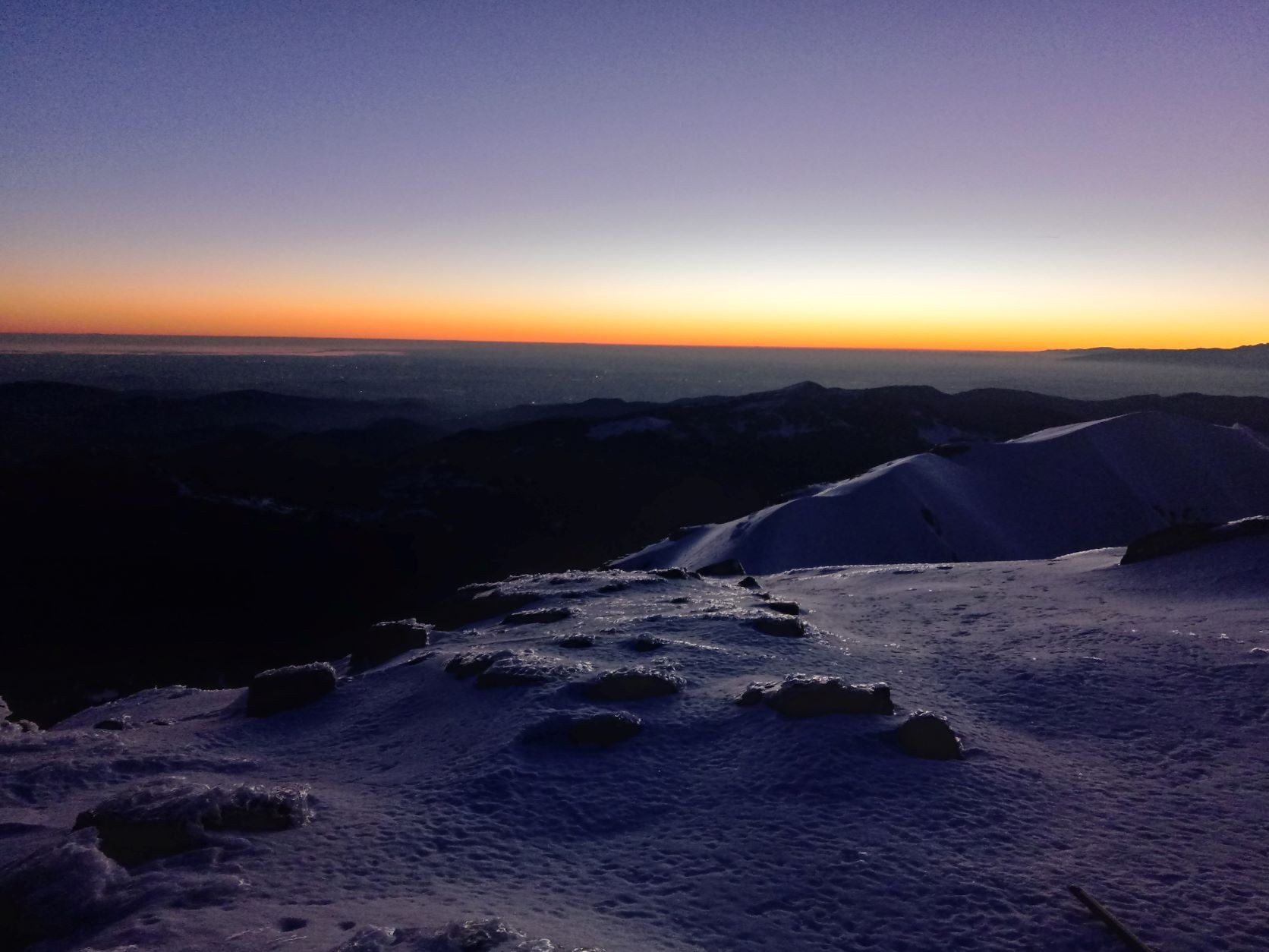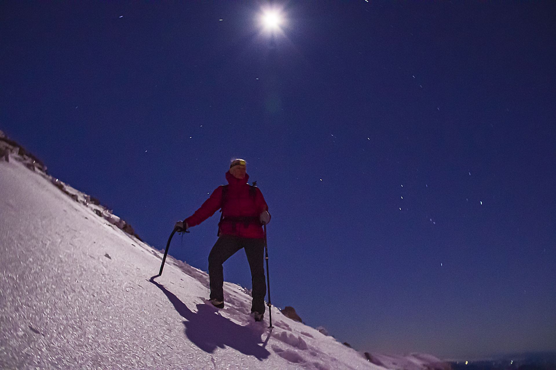 Vsaka noč je bila bolj svetla in padla je odločitev, grem na Krn ob sončnem zahodu in ob svetli polni luni nazaj. Skupaj z reševalcem in fotografom Miljkotom, ki je imel enake plane se zaženeva v precej sončen Krn. Vročina ni popustila do zadnje tretjine, čeprav je šele januar. Ko sva bila skoraj pri koči se je začelo na nebu barvati od zahajajočega sonca. Pohitela sva na vrh in uživala v nebeških barvah.