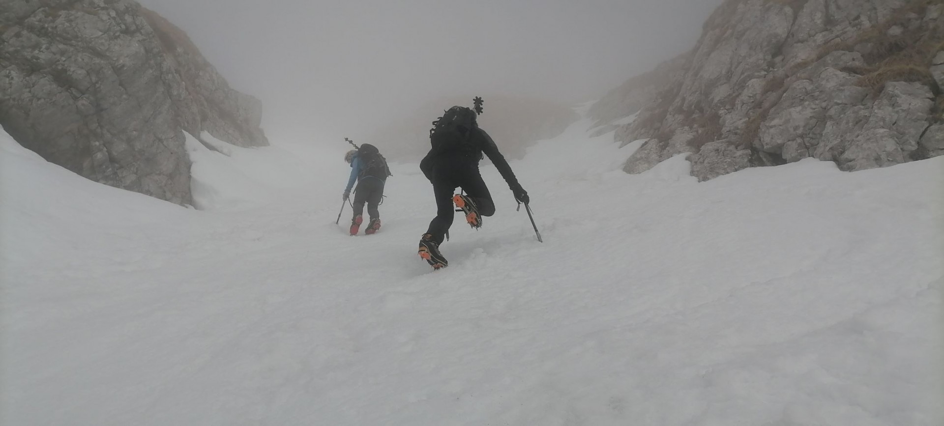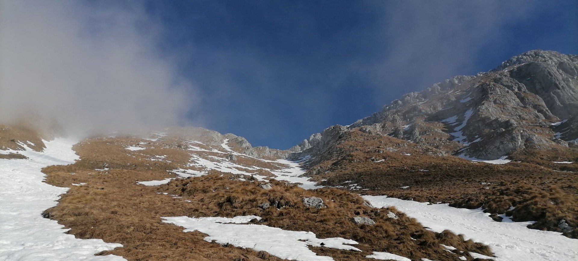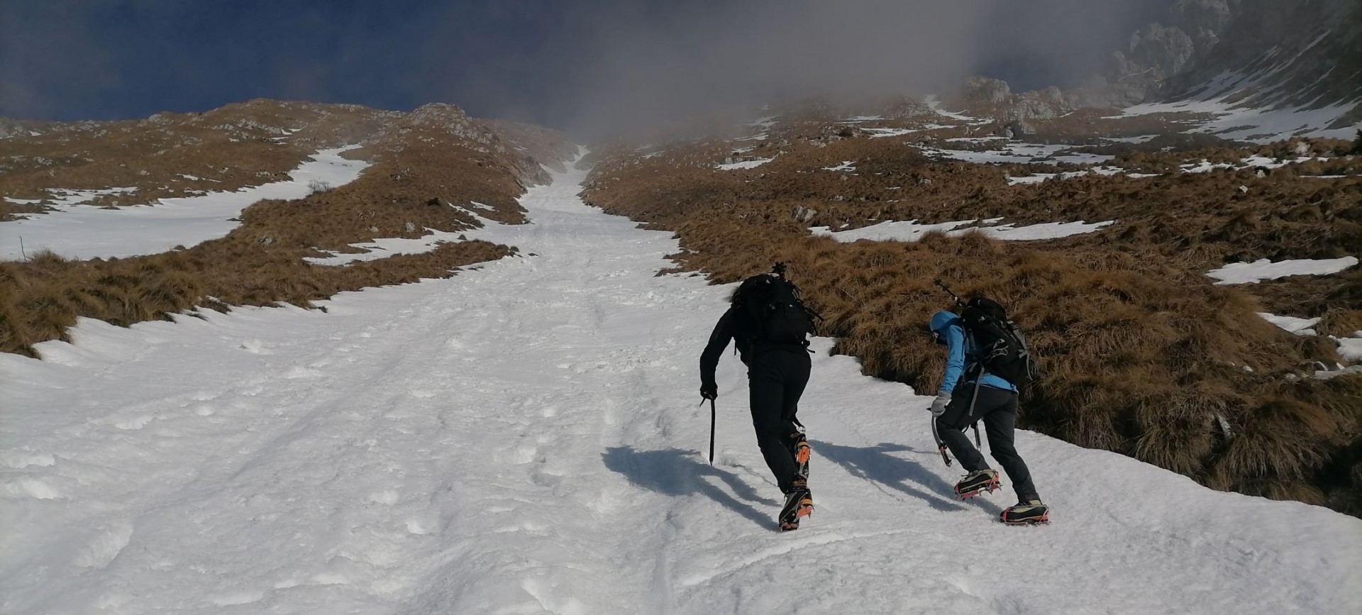 Tokrat gremo na Krn kar po grapi. Super razmere, ravno prav trdo, na vrhu se je zjasnilo. Čeprav so napovedali močan veter, je bila na vrhu le sapica, pri koči pa prav prijetno toplo.