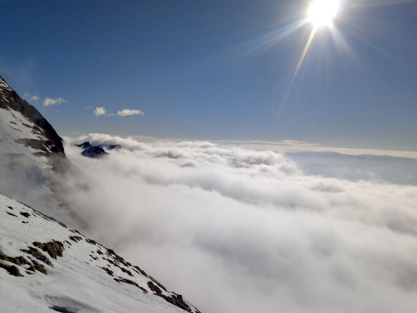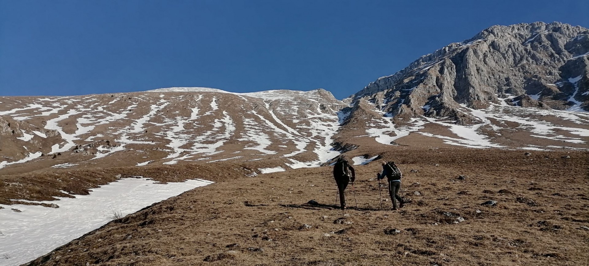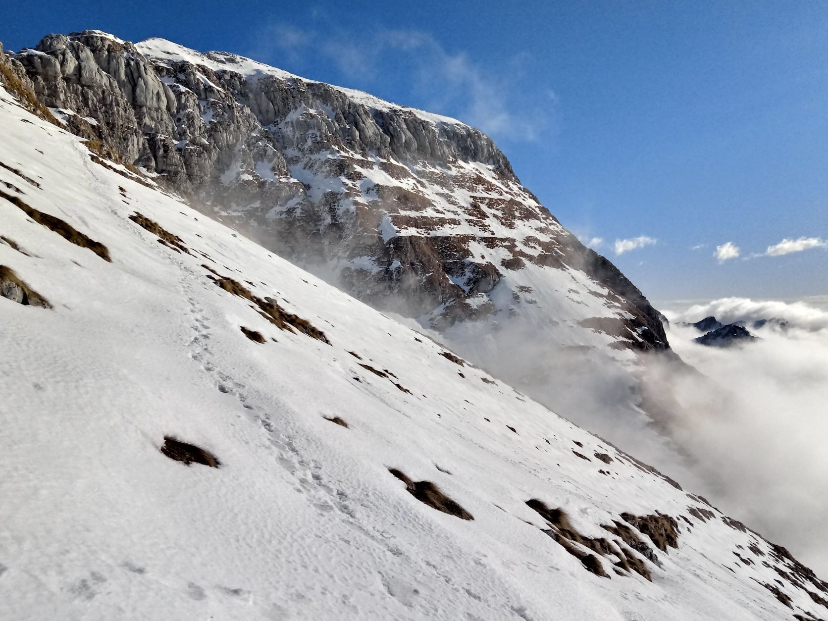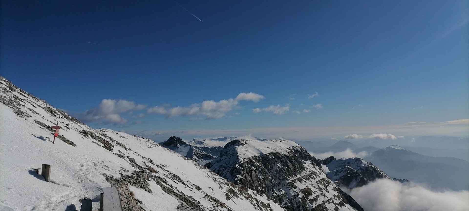 Tokrat gremo na Krn kar po grapi. Super razmere, ravno prav trdo, na vrhu se je zjasnilo. Čeprav so napovedali močan veter, je bila na vrhu le sapica, pri koči pa prav prijetno toplo.