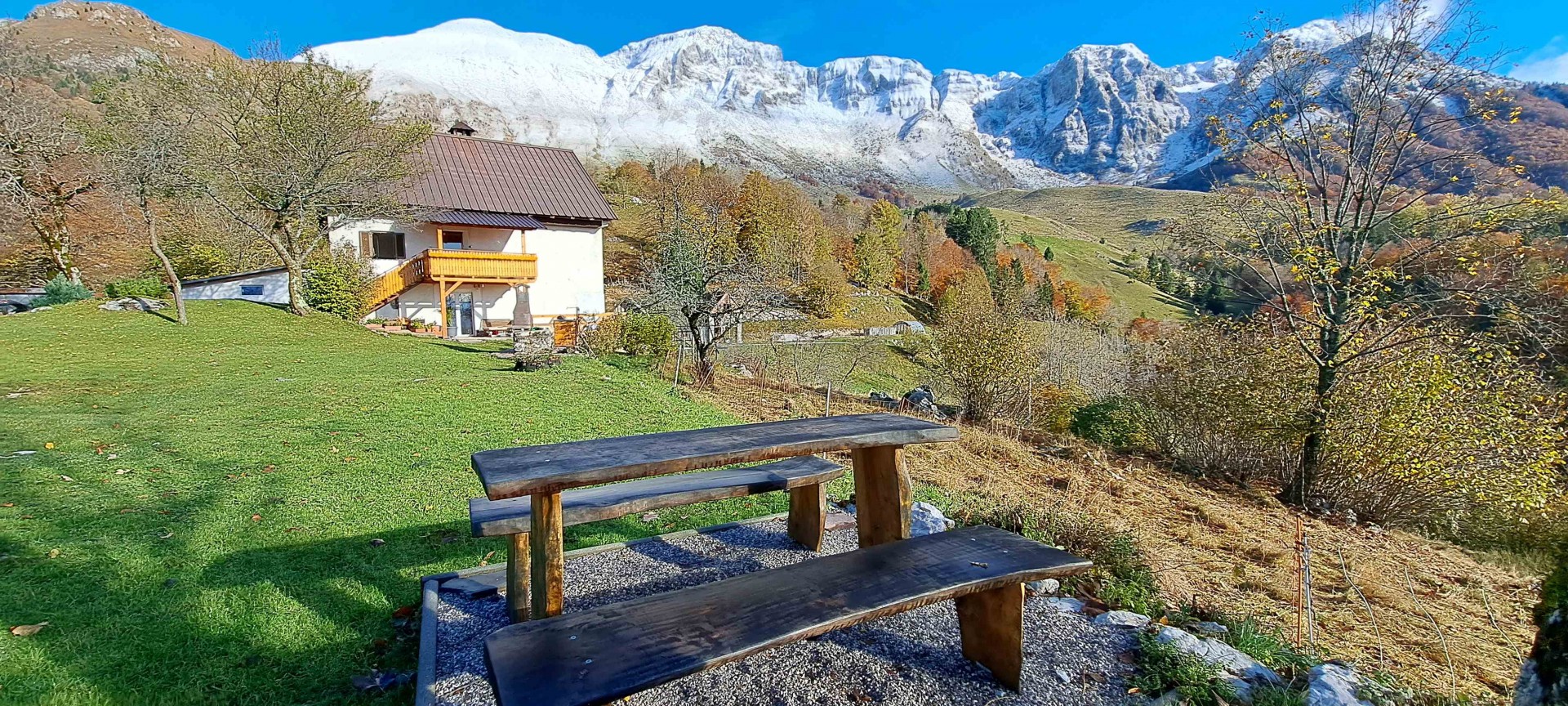 Na koncu prelepe idilične gorske vasice Krn, 1000m nad morjem, stoji kmetija s stoletno tradicijo v kateri imamo za vas pripravljen apartma. Pobeg pred vrvežem vsakdanjega življenja, edinstvena mirna lega, svež gorski zrak in neokrnjena narava so naravne vrednote za vsakega našega gosta. Prebudite se s pogledom na gore v prečudovit sončni vzhod. Zvečer se sprehodite po planini in občudujte sončni zahod pod gorami s pogledom na morje. Za ljubitelje pohodništva in turnega smuka se odpravite kar z apartmaja na turo, za boljšo varnost lahko najamete planinskega vodnika. Privoščite si zajtrk domačih dobrot v osrčju krnskega pogorja z veličastnimi pogledi na Julijske Alpe in triglavski narodni park.